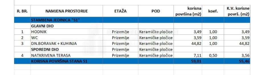 UKUPNO POV. PRIZEMLJA - brutto 59,01m2 - netto 55,61m2