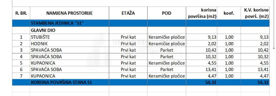 UKUPNO POVRŠINA PRVOG KATA: 54,32m2