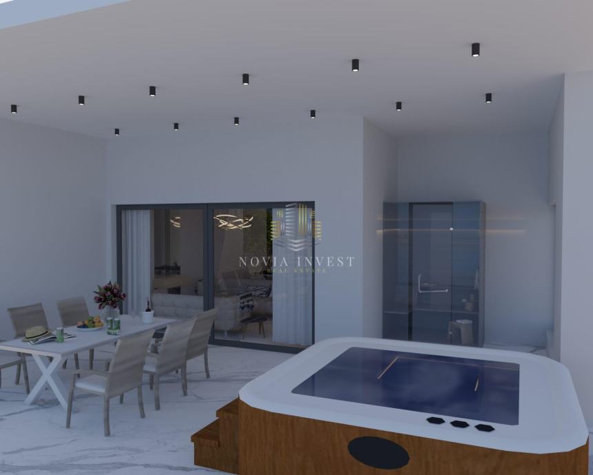 Stan S1 smješten je u prizemlju te mu pripada prostrani vrt površine 115,4 m², privatni bazen od 20,6 m² i natkrivena terasa od 39 m² – savršeno za opuštanje i uživanje u mediteranskom ambijentu.