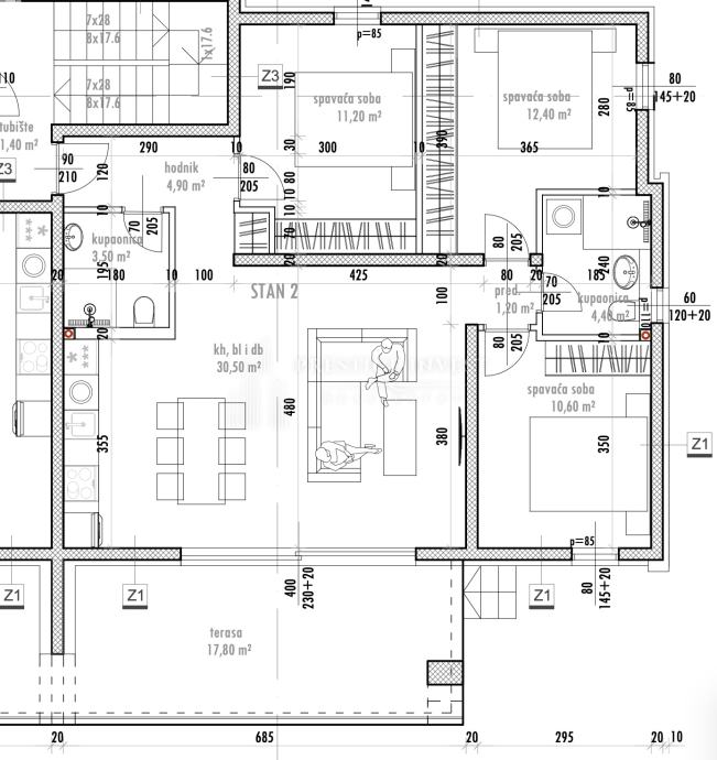 UKUPNO STAN S PRIPADCIMA: cca 101 m²
