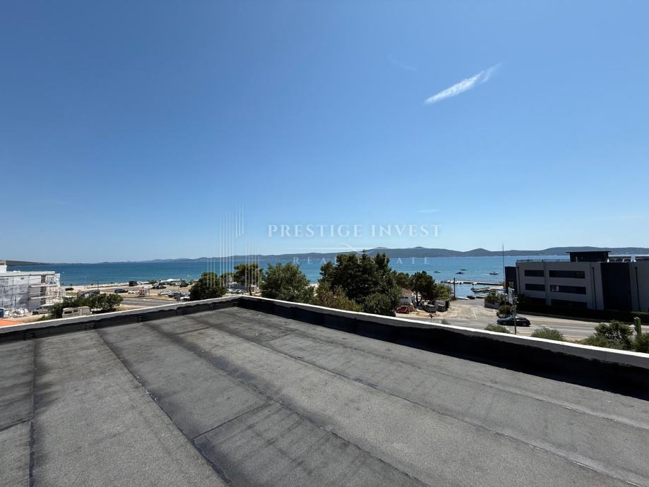 Prodaje se moderan četverosoban penthouse s krovnom terasom s ljetnom kuhinjom i jacuzzijem na drugom katu (Južna orijentacija) u Sukošanu prvi red uz more. Penthouse ima pogled na more. Stan ima ukupnu stambenu površinu od 249.10 m2 i sastoji se od:
