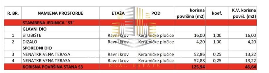 Dvije velike krovne terase površina 52,88 m² i 52,86 m² – idealne za jacuzzi, ljetnu kuhinju i uživanje u pogledu