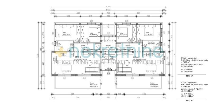 APARTMENT S1 WITH NET LIVING AREA OF 75.53 m2 CONSISTS OF: