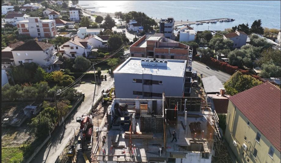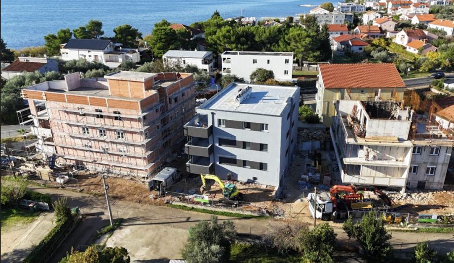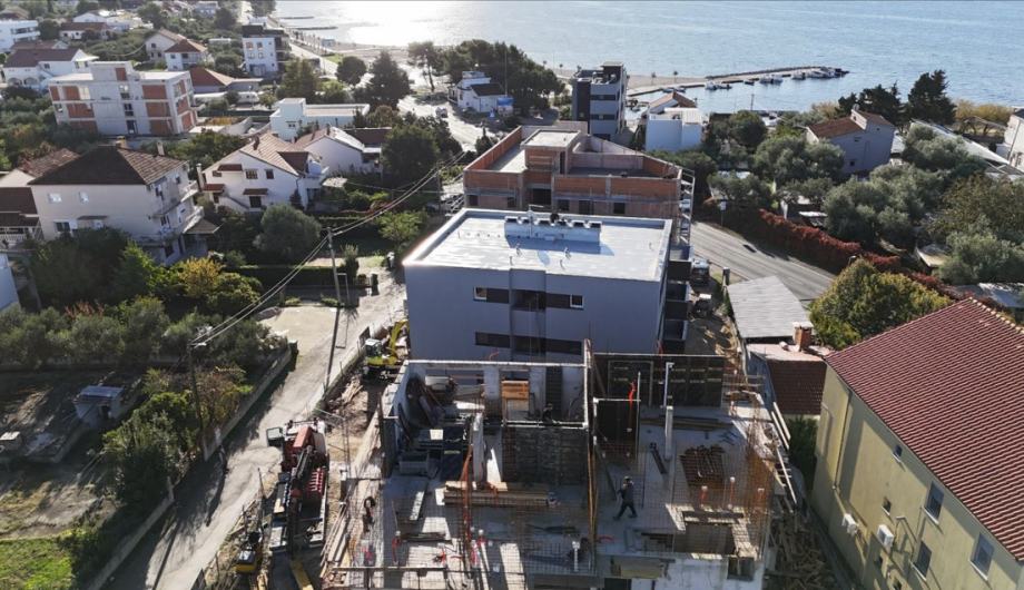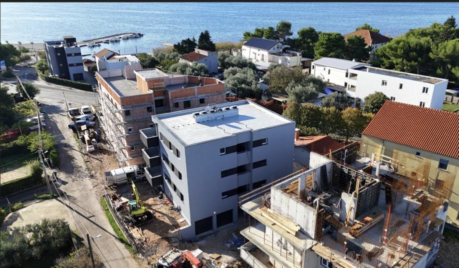 Kvalitetna gradnja, protupotresna armirano betonska konstrukcija, unutarnji zidovi i stropovi su izvedeni fino glatkim površinama uz milimetarsku toleranciju. Vanjski zidovi su kvalitetno izolirani sa 10 cm termoizolacije, te sadrže pored klasićne žbuke i vodoodbojnu završnu žbuku u boji. Sve zgrade posjeduju energetski certifikat A+. Svi stanovi su opremljeni visokokvalitetnim PVC prozorima, vratima sa ALU roletama na struju, te rolo komarnicima.žVanjska stolarija je kvalitetno ugrađena po sistemu RAL i izolirana, te su ugrađena ISO stakla punjena plinom. Svaka zgrada posjeduje videonadzor , te vlasnici stanova dobiju pristup. Elektroinstalacije su izvedene prema najvišem standardu , te sadrže modernu seriju prekidača i utičnica poizvođača TEM Modul. Unutarnja i vanjska rasvjeta je riješena LED tehnologijom. Grijanje i hlađenje je riješeno pomoću kvalitetnih klima uređaja zasebno u svakom stanu. Također penthouse ima kompletno podno grijanje dizalicom topline. Voda se zagrijava pomoći solarnih sustavba na krovu i električnog bojlera. Podovi su kompletno opremljeni porculanskim keramičkim pločicama. Izvrsna lokacija, nova uređena plaža i šetnica su odmah preko puta. Blizina restorana, trgovine. Zračna luka Zemunik na udaljenosti od 8 km. Stan dobiva jedno gratis parkirno mjesto te postoji mogućnost kupnje garaže. Useljenje je proljeće 2026 godine. Kupac ne plaća porez na promet nekretnina jer kupuje nekretninu od firme, investitora. Više informacija na upit.