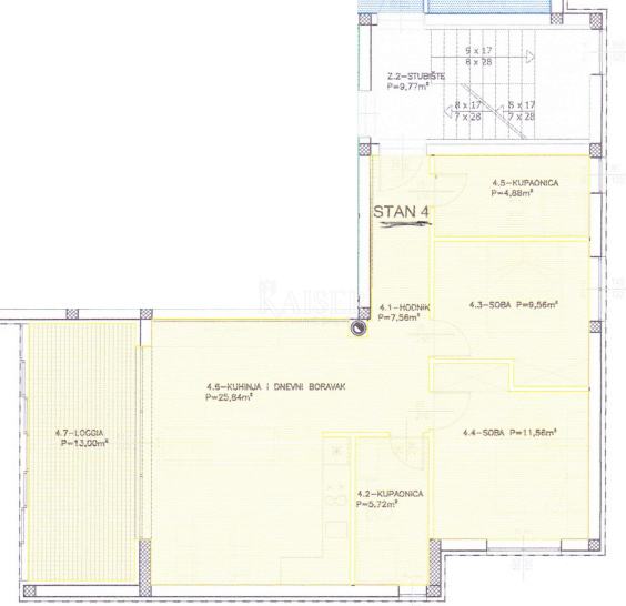 Kuhinja i dnevni boravak: 25,84 m² – Prostran i svijetao otvoreni prostor, s izlazom na veliku lođu.