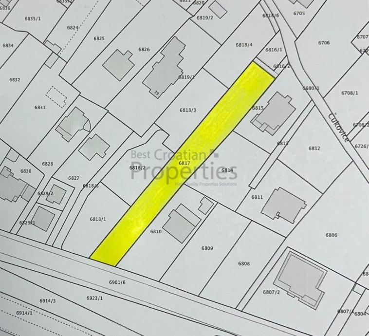 Zemljište se nalazi u građevinskoj zoni, ali zbog nedovoljne širine na regulacijskoj liniji nije pogodno za gradnju objekta.