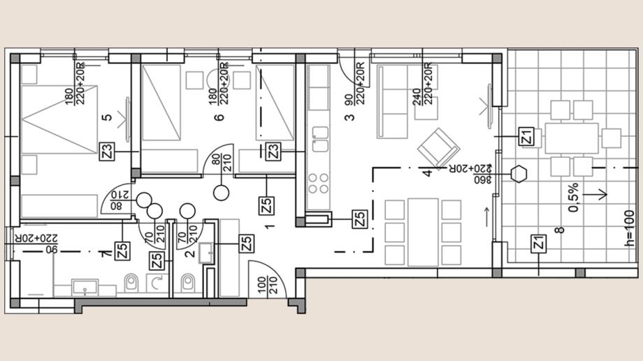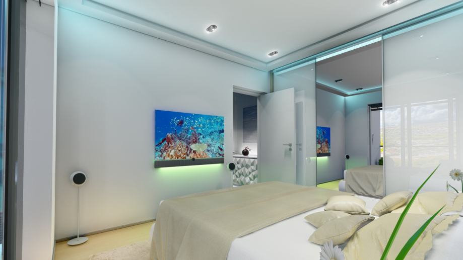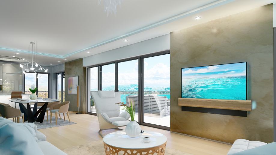 The apartments are of modern design, comfortable with two bedrooms of 89.76 m2, extra two-bedroom apartments with 121.51 m2, one-bedroom apartments of 62.16 m2 and luxury penthouse apartments of 136.14 m2 and 239.50 m2.
