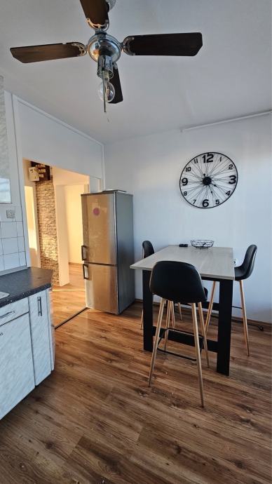 Stan je potpuno namješten - kuhinja ima stednjak i hladnjak, a u prostoru za blagovanje nalazi se stol s barski stolicama. Podovi su laminat. U dnevnoj sobi se nalazi kauč na razvlačenje a u spavaćoj sobi je bračni krevet. Grijanje je na gradsku toplanu, a prosječni iznos režija iznosi oko 100 eura mjesečno. Energetski razred je B.
