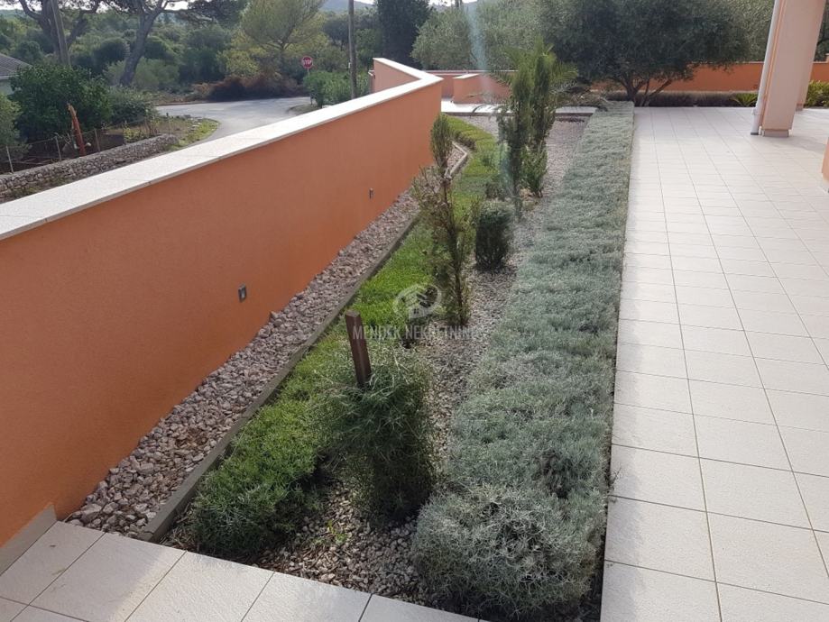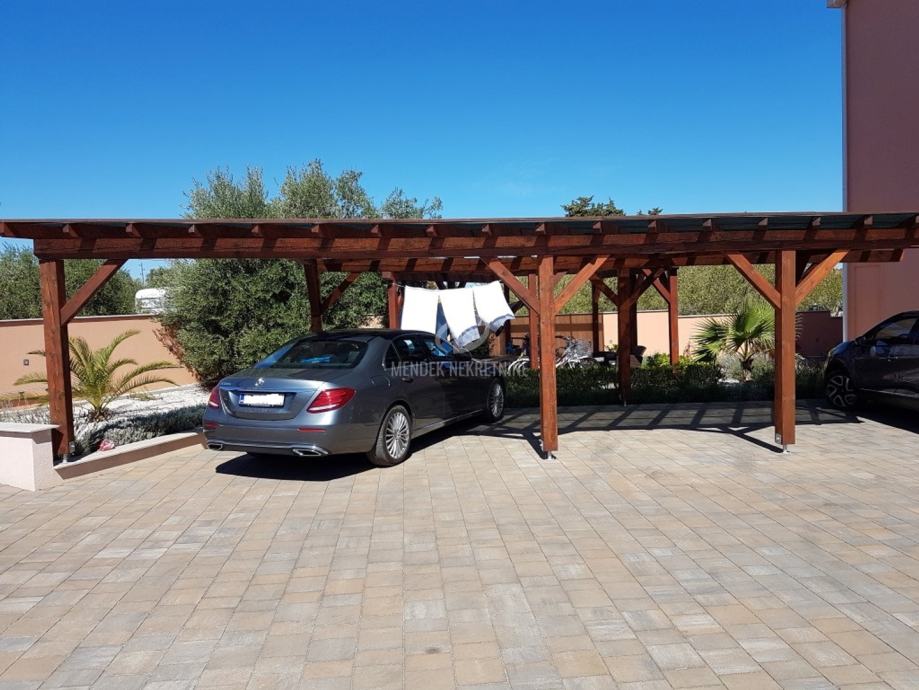 Vani su natkrita tri parkirna mjesta , te nadstrešnica za roštilj od cca. 20 m2 , plus još dva mjesta od po 2 m2 za postavljati roštilj . Vanjska rasvjeta, svako mjesto za roštilj ima posebno struju , vodu i kanalizaciju ,inox ograda sa el. motorom na daljinsko upravljanje . Svaka kuhinja ima i ugradbene perilice suđa, a kupaone perilice rublja, namješteno, televizori !!!!!!