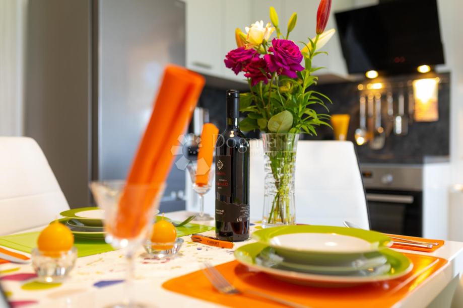 Dnevni dio i kuhinja imaju izlaz na lođu zaštićenu od velikih vrućina.