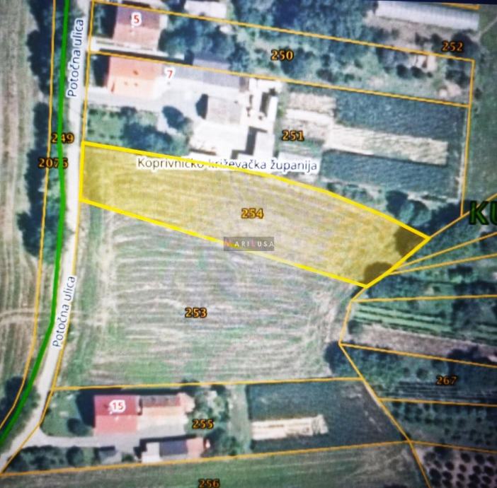 Prodaje se atraktivno gradilište u blizini Koprivnice (7km).Gradilište se nalazi u mirnoj ulici, ukupne površine 2083 m2, pravilnog pravokutnog oblika.Gradilište ima kolni prilaz, na kojem je sva potrebna infrastruktura (voda, plin, struja, kanalizacija, telefon).Posjedujemo LOKACIJSKU INFORMACIJU, šaljemo na pismeni upit.