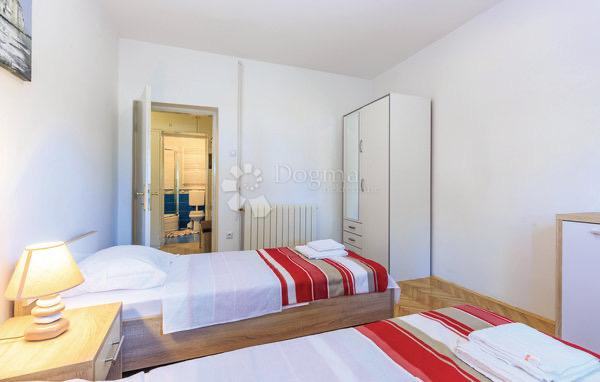 Iznajmljujemo u dugoročni najam krasan dvosobni stan. Nalazi se u mirnoj ulici, udaljenoj od mora svega 300m. Sastoji se od dvije spavaće sobe, dnevnog boravka, kuhinje i blagovaonice i jedne kupaone. Ima vlastitu terasu za uživanje u miru.