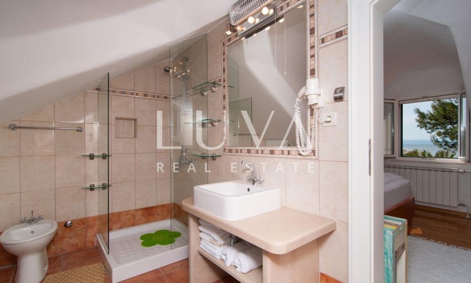 Ova iznimna nekretnina smještena je doslovno na samoj obali, samo nekoliko koraka od mora, u blizini Supetra na otoku Braču. Rijetka je prilika za kupnju vile s izravnim pristupom plaži, privatnošću i predivnim pogledom na Jadran. Kuća se prostire na 180 m² kroz tri etaže, a zemljište ima ukupno 330 m² i u potpunosti je ograđeno, uključujući i privatni bazen.