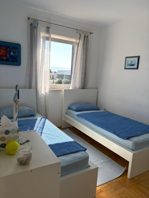 Prodaje se prekrasan prostran i svijetao stan s četiri spavaće sobe, dnevnim boravkom, blagovaonicom i kuhinjom, na 2. katu zgrade građene 2003. godine, ukupne neto površine 85 m², s dva balkona i predivnim pogledom na more.