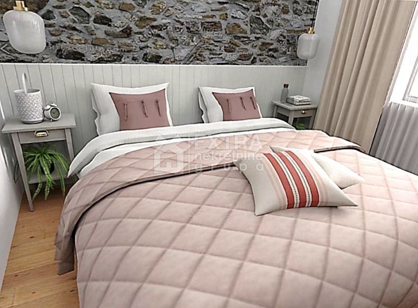 U potkrovlju su dvije dvokrevetne sobe sa kupaonicom, hodnik i terasa sa jacuzzijem.