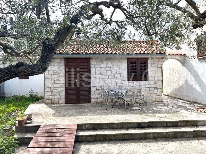 U mirnom kvartu, u blizini mora, lijepo pozicionirana na parceli od 602m2 na kojoj se još nalazi i jedan samostalni studio apartman površine 20m2.