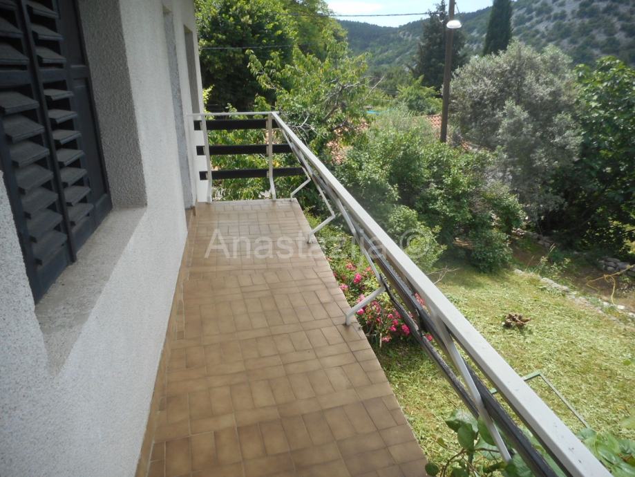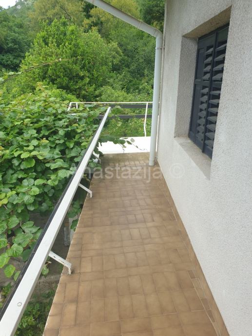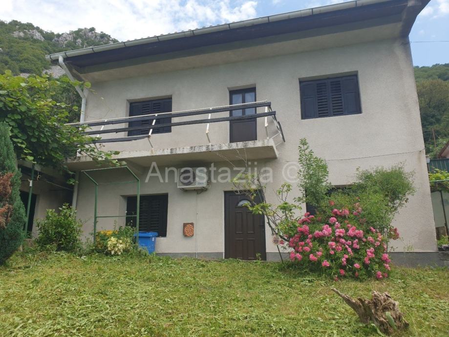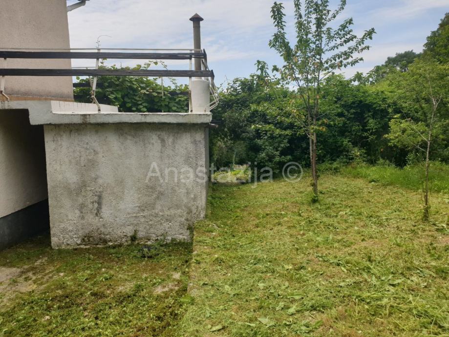 Kuću P+1, dvojnu, s otprilike 120 m2 stambenog prostora i oko 300 m2 okućnice prodajemo. Radi se o stabilnom održavanom objektu koji se sastoji od kuhinje s blagovaonicom, tri sobne prostorije, hodnika, kupaonice, balkona, stepeništa, drvarnice i dvorišta. Kuća je održavana, ali zahtijeva i dodatno uređenje. Priključena je na komunalnu infrastrukturu (struja, voda), a za odvodnju koristi septičku jamu. Nalazi se u lijepom zelenom okruženju.