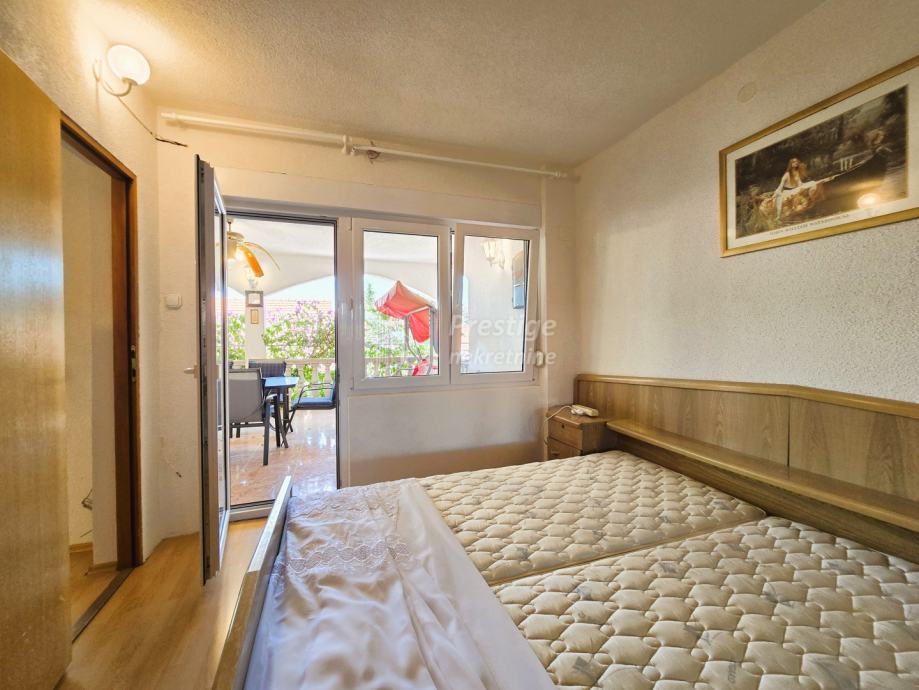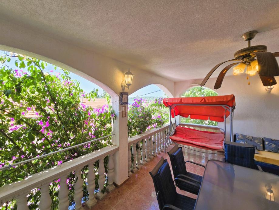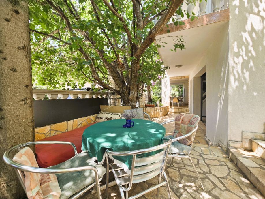 Na prodaju je prostrana kuća na izvrsnoj lokaciji u Kruševu, mirnom mjestu u Karinskom moru. Kuća je udaljena svega 80m od mora, površine je 270 m2, a nalazi se na parceli od 300m2. Kompletno je uređena, a sastoji se od prizemlja, kata i potkrovlja. Trenutno je razdvojena na četiri jedinice (apartmana), uz mogućnost prilagodbe potrebama vlasnika. Okružena je zelenilom, a s terasa se pruža prekrasan pogled na more. Uz garažu, tu je mjesto i za parkiranje dodatna četiri vozila. Vlasništvo uredno.