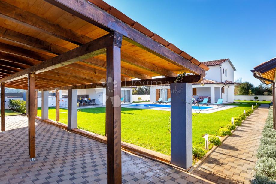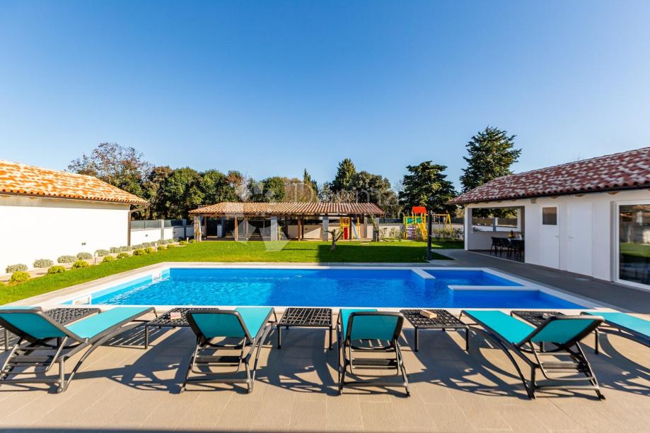 Prekrasna istarska ljepotica ukupne površine 340m2 sastoji se od prizemlja u kojem se nalazi jedna spavaća soba, open space prostor sa potpuno opremljenom kuhinjom i blagovaonom te dnevni boravak koji Vas vodi do plaže bazena od 50m2.