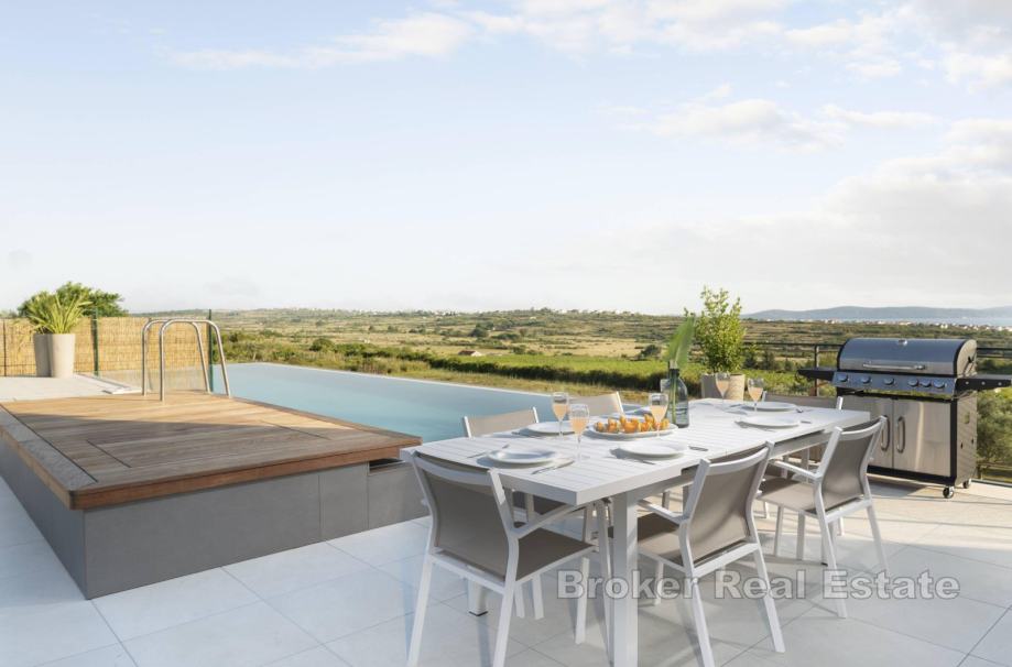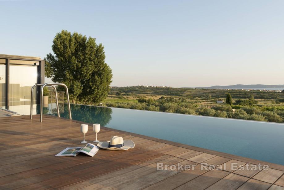 Vila modernih linija smještena u na velikom imanju okružena maslinicima i netaknutom prirodom, udaljena na samo nekoliko minuta vožnje od centra Zadra.