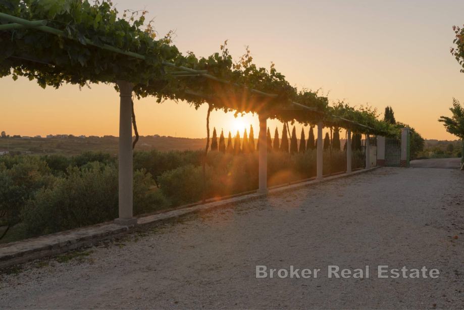 Imanje se prostire na cca 10 000m2. na njemu se uz zasade maslina, loze i ostalog mediteranskog bilja nalaze dva objekta. Centralna vila i pomoćna gospodarska zgrada ukupne stambene površine 650m2.