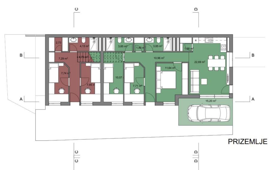 Prodaje se građevinsko zemljište površine 1340 m2 s glavnim projektom za dvojni objekt ukupne netto korisne površine 700 m2.