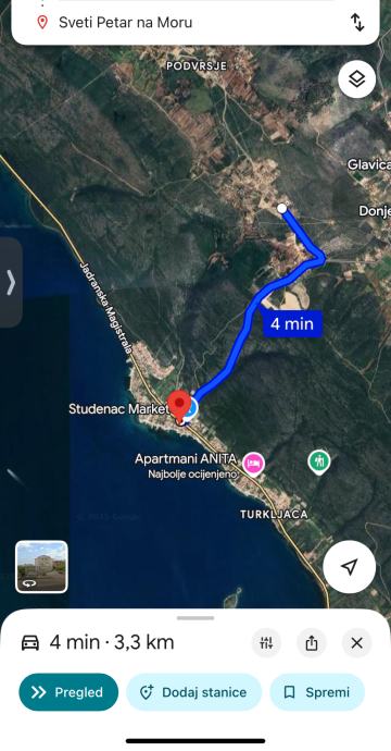 3.3km udaljeno do mora Sveti Petar (4min autom) - u prilog stavljam sliku.
