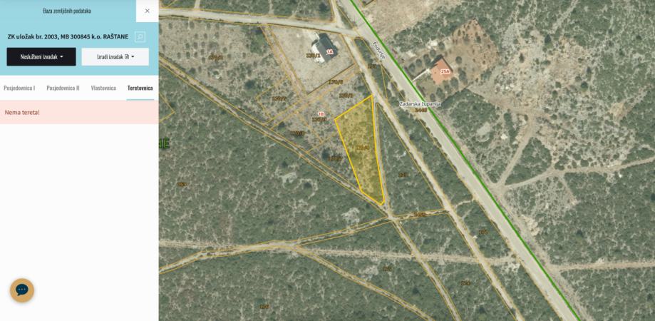 Slika 3. - izvod iz zemljišnih knjiga, parcela bez tereta.