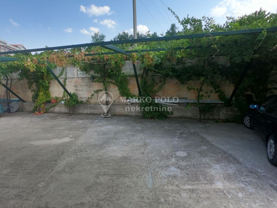 U dvorištu se nalazi garaža sa 2 parkirna mjesta te još 7 natkrivenih, vrtna kućica sa roštiljem i bazen.