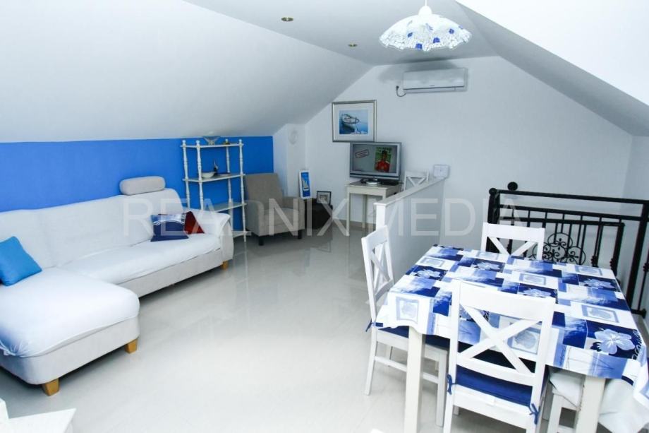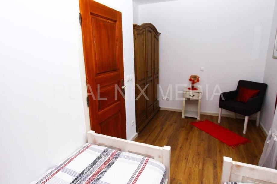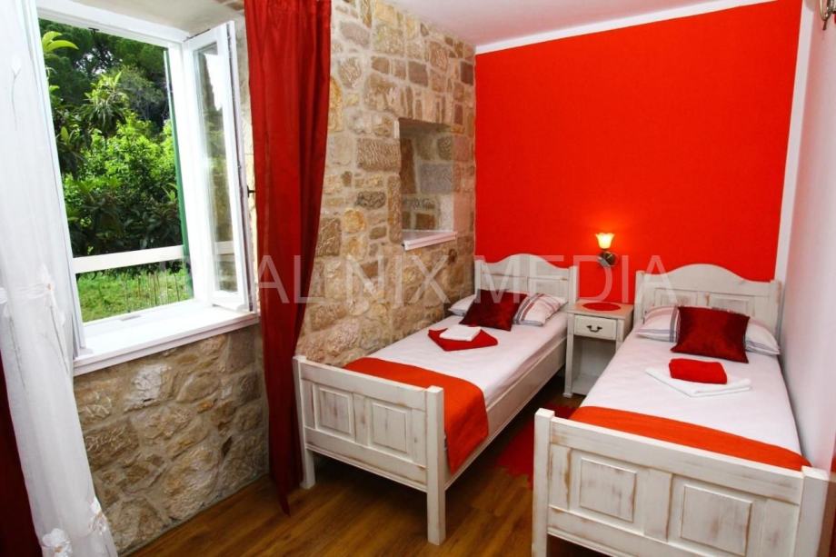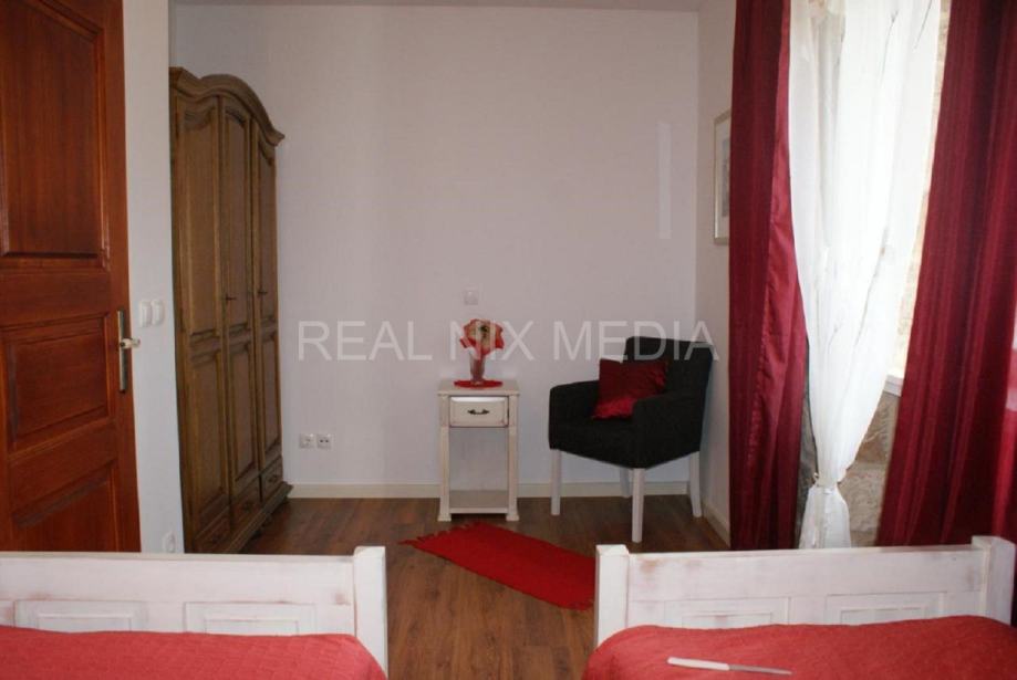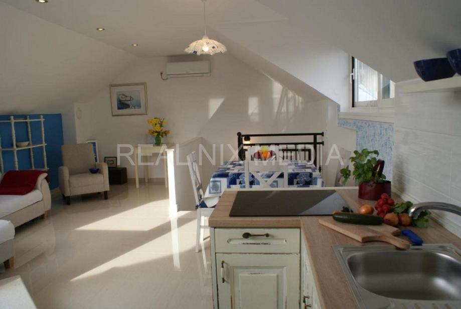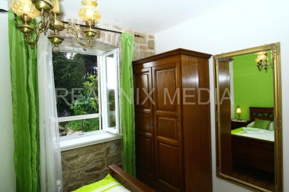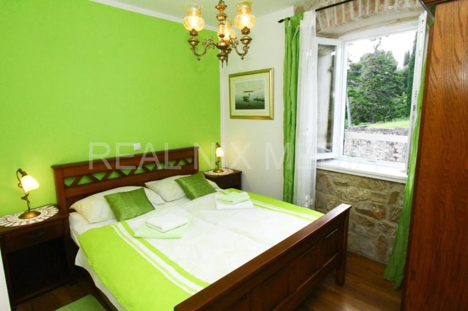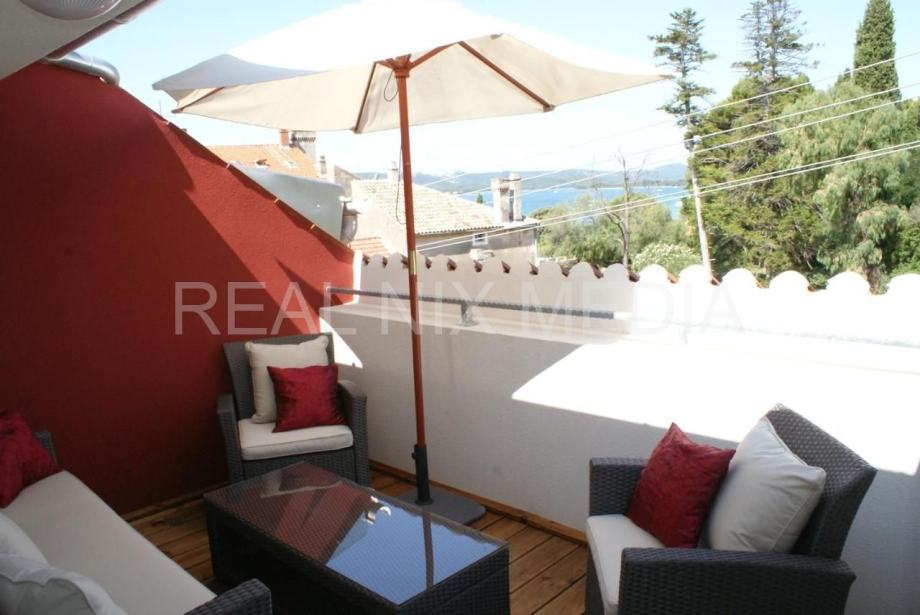 Zbog povišenog položaja, iz loggie se pruža pogled na more i park. S obzirom da kuća ima 2 ulaza, ima i više opcija korištenja; kao jedna stambena jedinica ili kao 2 stambene jedinice.Kuća se prodaje kompletno namještena. Velik dio namještaja je rađen po mjeri i u rustikalnom mediteranskom stilu.Zbog odličnog položaja, predivnog ambijenta i uređenja, a i zbog same posebnosti objekta, ovo je odlična prilika za bavljenje turizmom, cjelogodišnji boravak ili za uživanje u povijesnoj jezgri ovog predivnog mjesta.Kuća je kompletno renovirana 2013. godine. U visokom potkrovlju postoji mogućnost grijanja na kruta goriva.Kuća posjeduje svu potrebnu dokumentaciju, uredno vlasništvo!