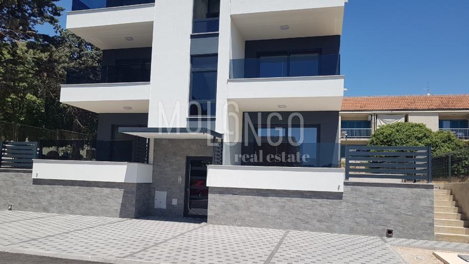 Nalazi se na drugom katu stambene zgrade s ukupno 6 stanova. Sastoji se od dvije spavaće sobe, kuhinje i dnevnog boravka, velike kupaone, te balkona s kojega imate otvoreni pogled na more.