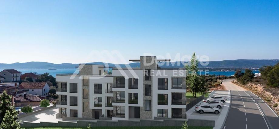 Prodaje se luksuzan i moderan apartman u NOVOGRADNJI / zgradi sa ukupno 12 stambenih jedinica, na mirnoj lokaciji - 800 m od mora. Objekt se sastoji od prizemlja, prvog i drugog kata, te krovne terase s koje se pruža panoramski pogled na more i otoke.