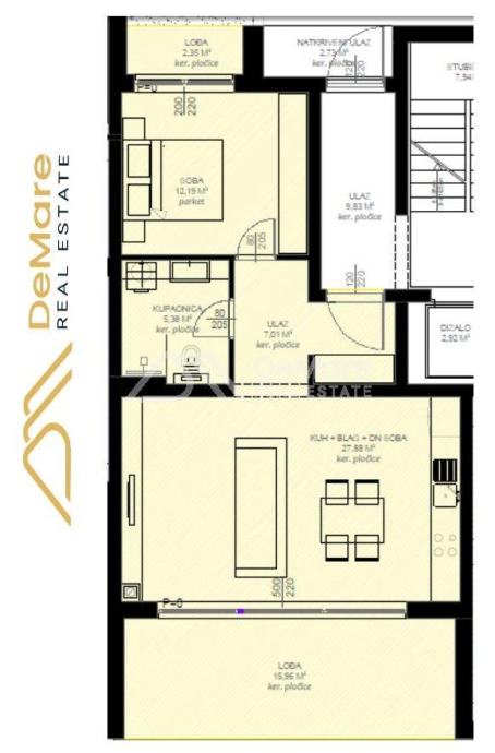 Stambeni prostor stana zajedno s lođama zauzima obračunsku vrijednost korisne površine 66,19 m2.