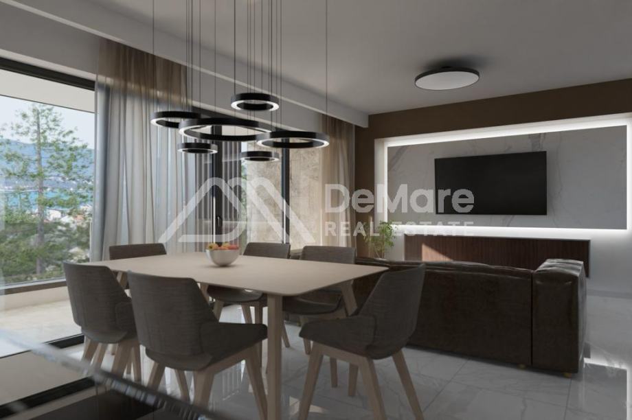 Prodaje se luksuzan i moderan stan u NOVOGRADNJI / zgradi sa ukupno 12 stambenih jedinica, na mirnoj lokaciji - 800 m od mora. Objekt se sastoji od prizemlja, prvog i drugog kata, te krovne terase s koje se pruža panoramski pogled na more i otoke.