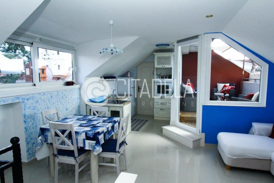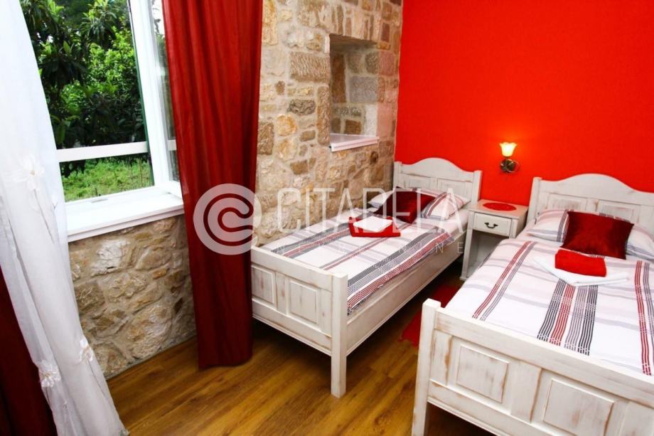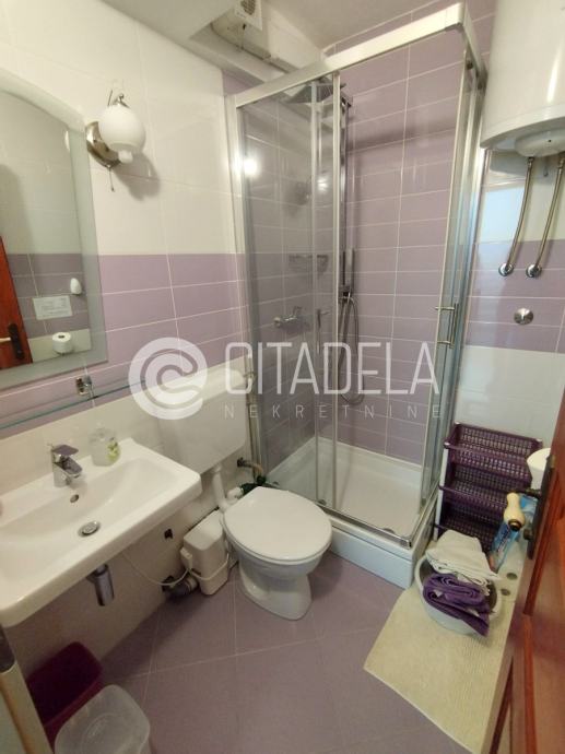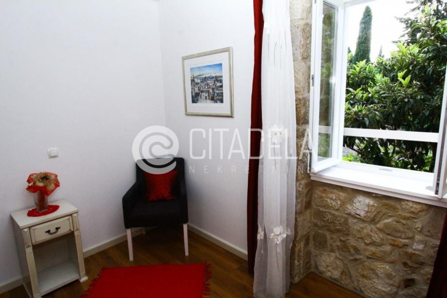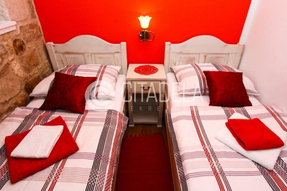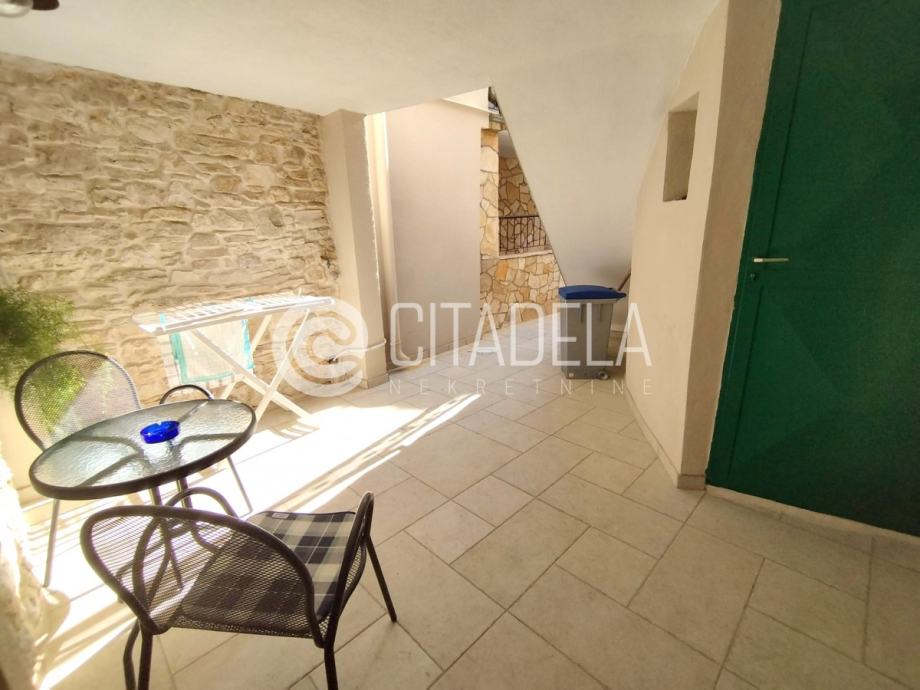 Kompletno je renovirana i namještena 2021.g. Sastoji se od dva stana, a prikladno je i da bude jedna stambena jedinica. Ukupna površina iznosi 133,20 m2 stambenog + terasa 15 m2.