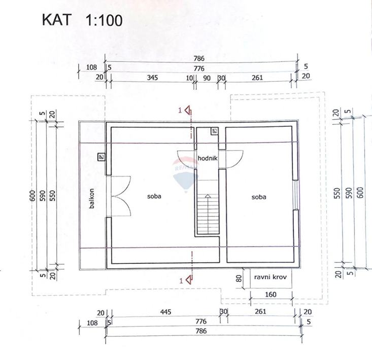 Na katu su dvije prostrane spavaće sobe od kojih veća ima izlaz na balkon.