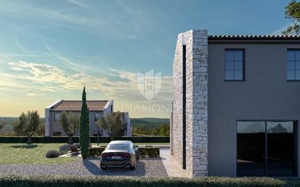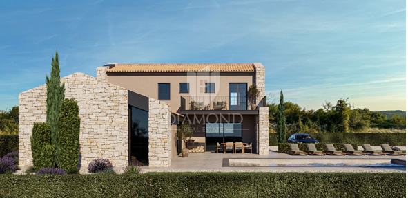 U mirnom mjestu nedaleko od Sv. Lovreča, gradi se moderna vila čiji dizajn oduzima dah. Smještena na parceli od 1.100 m², ova vila pruža savršen spoj suvremenog dizajna, privatnosti i luksuza.