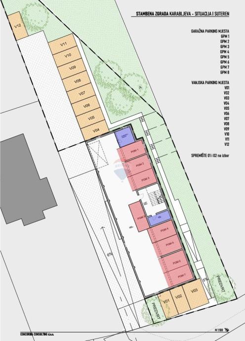KONSTRUKCIJA zgrade je armirano betonska - AB zidovi su debljine 20-25cm, zidovi između stanova su toplinski i zvučno izolirani, AB međukatne ploče su debljine 22 cm, a svjetla visina nadzemnih etaža je cca 260 cm.