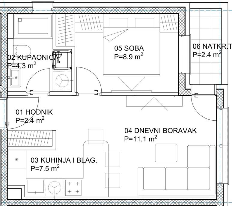 Projekt stambene namjene sastoji se od 12 moderno projektiranih stambenih jedinica, raspoređenih od visokog prizemlja do 2. kata, uz podzemnu garažu i vanjske parkinge.