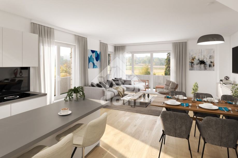 Stanove će imati građevinku dozvolu sljedeći tjedan te ih možete kupiti i putem kredita sa minimalnom kaparom od 10% ili većim udjelom što pojeftinjuje kvadrat ovisno o visini udjela ali ne više od 40% ugovorene cijene.Ovaj stan je na južnoj strani objekta.