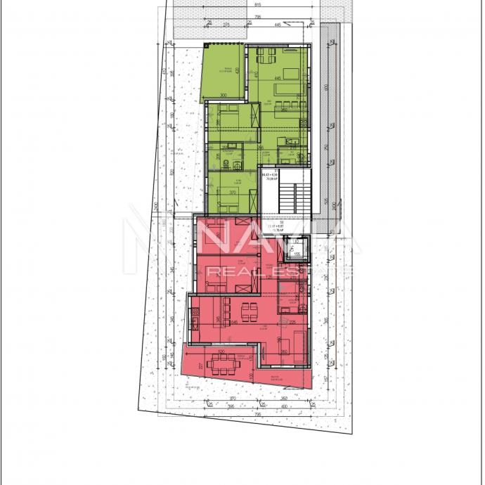 Zgrada će imati lift, pročelje će biti obloženo travertin pločama, a s terase će se pružati prekrasan pogled na more.