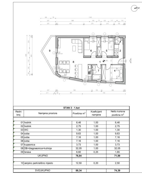 Četverosoban stan ukupne neto korisne površine 74,39 m2 smješten na 1. katu.Sastoji se od 2 hodnika, wc-a, 3 spavaće sobe, kupaonice, dnevnog boravka s blagovaonicom te kuhinje.Pripadaju mu terasa te vanjsko parkirno mjesto.-----U okviru novogradnje planirana je izgradnja stambene zgrade s pet...Za ovu nekretninu kontaktirajte agenta na broj telefona +385 91 938 8561.Više na Eurovilla.hr, ID: 769812Direktan link: https://eurovilla.hr/nekretnina/sveti-ivan-zelina-brezovec-zelinski-moderan-cetverosoban-stan-nkp-74-m2-novogradnja/769812/-----Four-room apartment with a total net usable area of 74.39 m2 located on the 1st floor.It consists of 2 hallways, a toilet, 3 bedrooms, a bathroom, a living room with a dining room and a kitchen.It has a terrace and an outdoor parking space.-----As part of the new development, a residential building... For this property contact our agent on telephone number +385 91 938 8561.More on Eurovilla.hr, ID: 769812Direct link: https://eurovilla.hr/en/property/sveti-ivan-zelina-brezovec-zelinski-a-modern-four-room-apartment-of-74-m2-new-building/769812/...