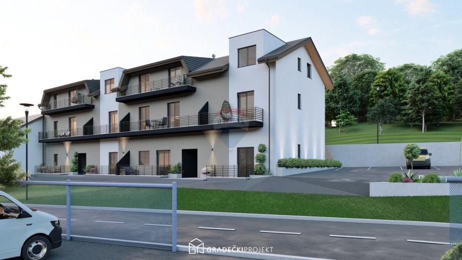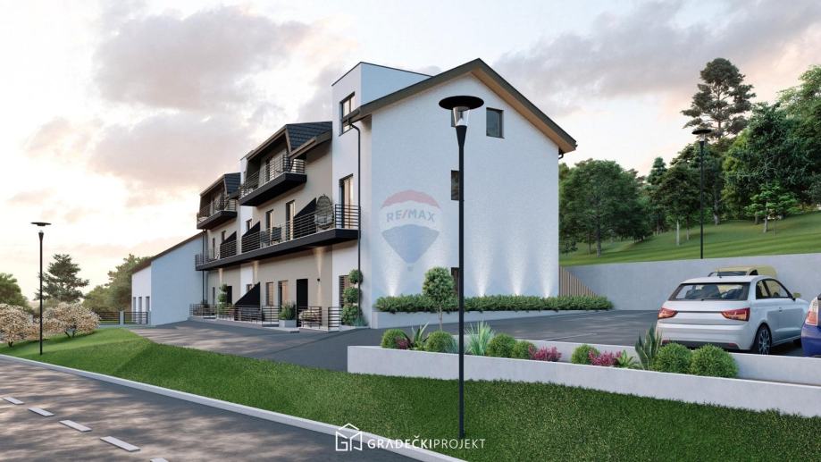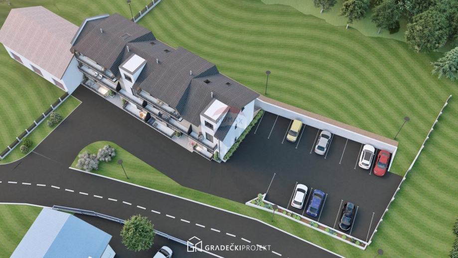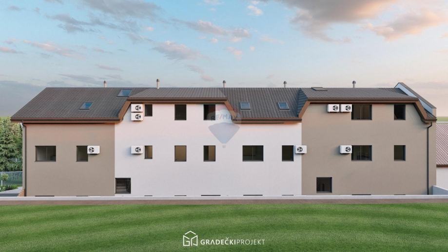 Na zemljištu je započeta izgradnja višestambenog objekta (roh bau faza), koji je projektiran kao zgrada s tri etaže – prizemlje, kat i potkrovlje – te ukupno 12 stambenih jedinica različitih kvadratura (cca 44 m² do 75 m²). Svaki stan ima vlastiti ulaz, većina ih ima terasu ili lođu, a raspored prostora osmišljen je funkcionalno i s naglaskom na udobnost stanovanja.