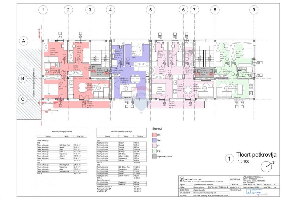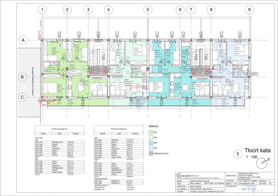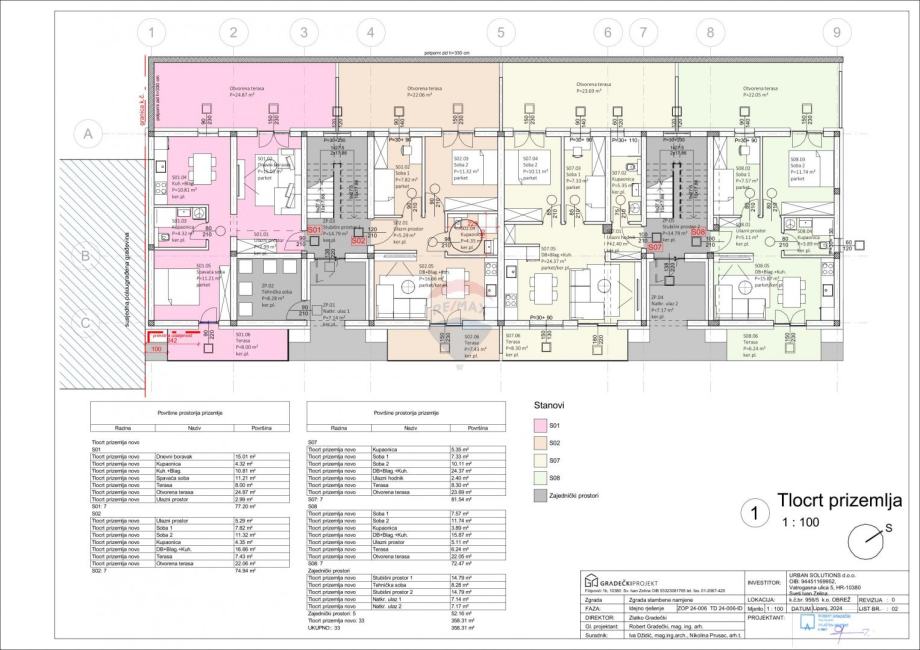 Ukupna projektirana stambena površina iznosi približno 870 m².