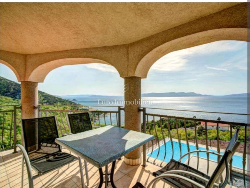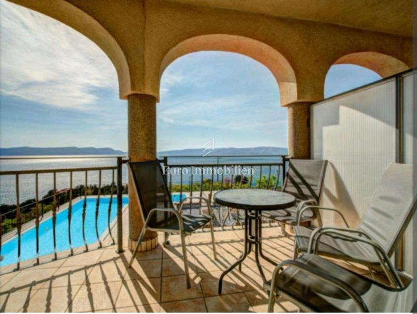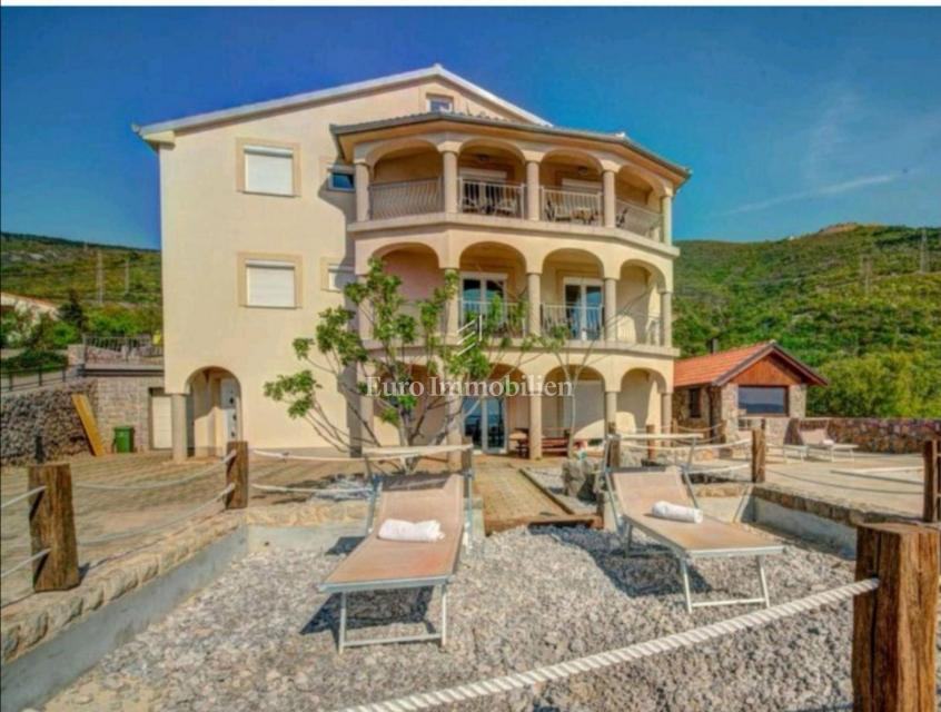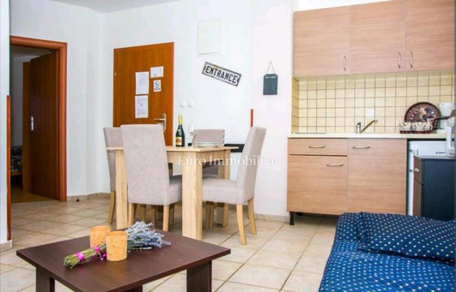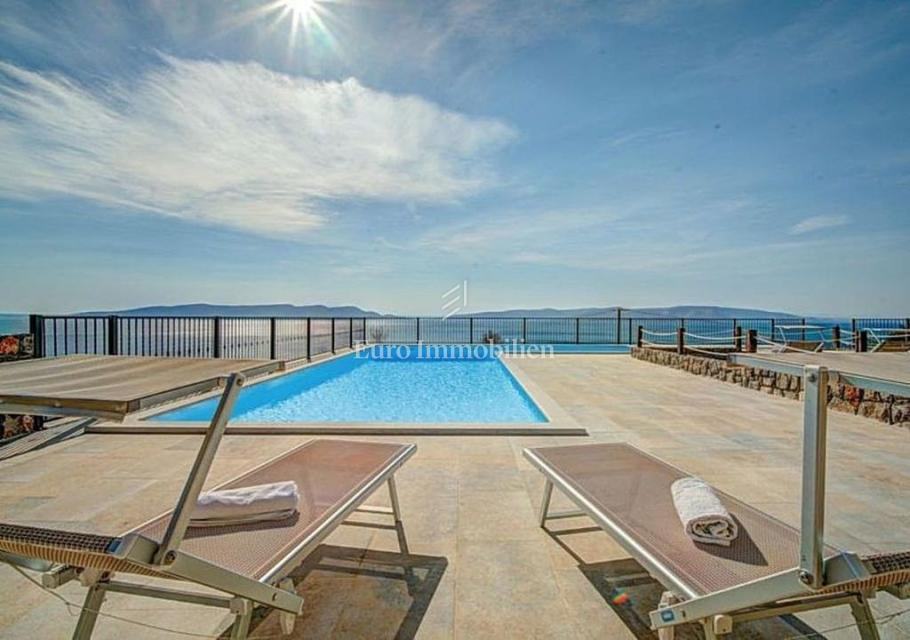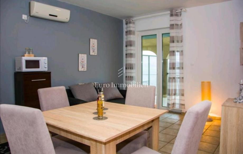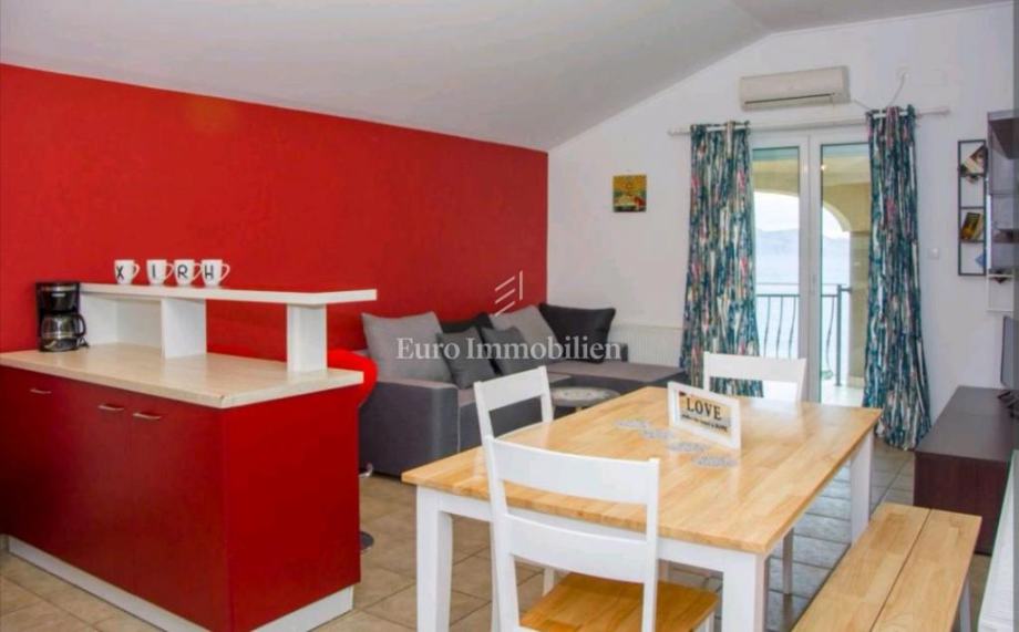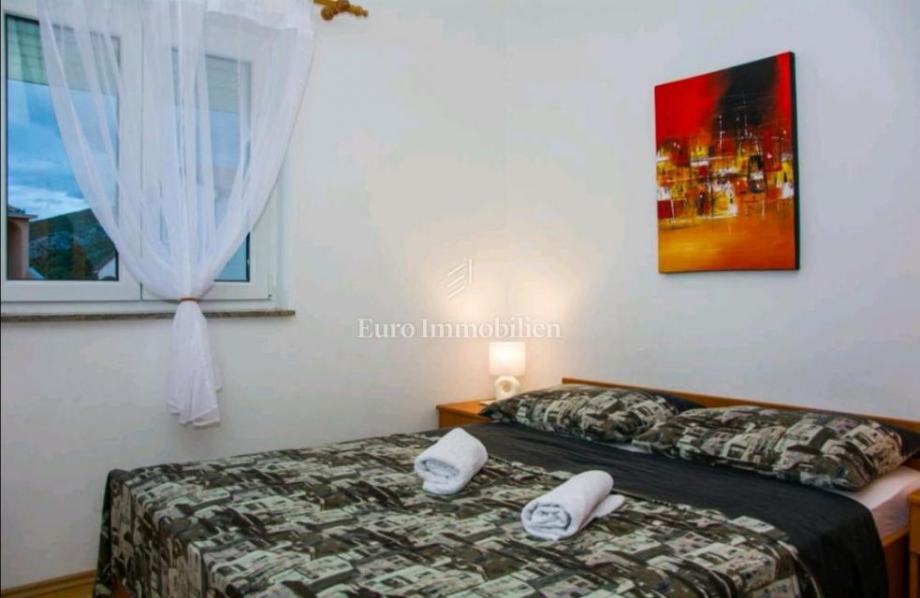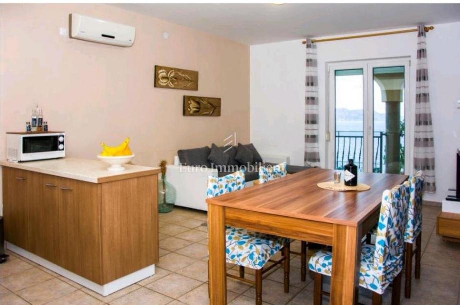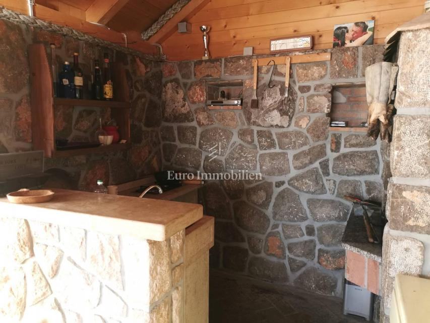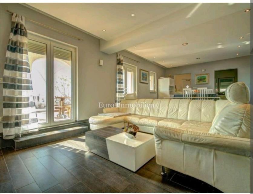 Prodajemo kuću sa pet stambenih jedinica, konobom, bazenom od 64 m2. Kuća se sastoji od prizemlja, dvije etaže i potkrovlja. U prizemlju se nalazi garaža, dvosobni stan sa dvije kupaone, kuhinja, blagovaona i dnevni boravak otvorenog tipa. Stan u prizemlju ima podno grijanje. Na prvom i drugom katu nalaze se četiri dvosobna stana sa prekrasnim pogledom na more. Jedan apartman ima centralno grijanje na pelete. Cijela kuća je klimatizirana. Potkrovlje se može prenamjeniti u stambeni prostor. Nekretnina u uhodanom turističkom najmu. Lokacija prekrasna idealna za odmor i uživanje.