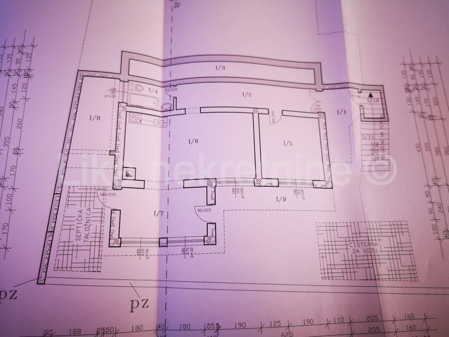 SVETI JURAJ - Novo naselje, samostojeća kuća katnica, sut+pr+1, dvorište, veliki parking. Kuća u suterenu ima natkriveni ulaz, hodnik, spavaću sobu, kupaonicu, blagavaonicu, dnevni boravak / kuhinja, spremište, terasa natkrivena, ugradbeni ormari, kotlovnica, vanjsko spremište ukupno 84,57 m2. U prizemlju je velika natkrivena terasa, hodnik, kuhinja/blagovaonica, 2 sobe, predsoblje, dvije kupaone, balkon s direktnim pogledom na more, garaža, ukupno 146,91 m2. Na katu se nalazi velika natkrivena terasa, dnevni boravak s kuhinjom, kupaonica, predprostor, kupaonica, soba, velika terasa natkrivena, ukupno 121,54 m2, tavan 26,12 m2, ukupna neto površina površina cijele nekretnine 353,02 m2, dok je podna površina 478,56 m2. Kuća ima tri samostojeće cisterne za vodu od 15.000 , 28.000 i 40.000 litara vode. Vodonepropusna septička jama V=21 m3. Kuća je započeta s gradnjom 1982. godine a završena 1987. godine, komplet adaptirana 2017.godine. Krovište je izgrađeno dvostrešno nagiba 22*. Instalacija vodovoda priključena je preko hidrofora DN 15 mm, na dvije samostojeće cisterne 43.000 lit. Stolarija je drvena i pvc, parking uz kuću za 3 vozila te jedno u garažu. Kuća ima sve potrebne dozvole od građevinske do arh.snimka izvedenog stanja za nezakonito izgrađene zgrade ( ozakonjenje vanjskih terasa ).