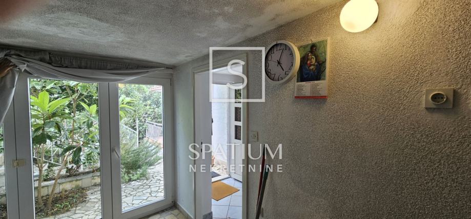SVETI JURAJ, SENJ, u ponudi je dvojna kuća blizu mora. Sastoji se od suterena, prizemlja i kata te studio apartmana površine 19m2, konobe i drvarnice, samostalnih objekata izgrađenih u sklopu okućnice. U suterenu se nalazi spremište u kojem je perilica rublja. Stambeni prostor prostire se na dvije etaže koje su povezane unutarnjim drvenim stepenicama, a koji bi se po želji novog vlasnika mogao prenamijeniti u dvije zasebne stambene jedinice. U prizemlju se nalaze ulazni prostor, kuhinja, blagovaona, dnevni boravak koji ima izlaz na terasu s pogledom na more i kupaona. Na prvom katu su dvije spavaće sobe, od kojih veća soba ima izlaz na prostranu terasu s prekrasnim pogledom na more i kupaona. Dio prizemlja zauzima i prostorija za druženje s roštiljem i velikom staklenom stijenom koja je ujedno i izlaz na terasu. Kuća je opremljena PVC stolarijom, dimnjak omogućuje grijanje na kruta goriva. Prilaz kući je moguć s dvije strane, parkirno mjesto za dva vozila u vlasništvu te u okolini još dovoljno prostora za parking na javnoj površini. Popločena okućnica sastoji se od nekoliko terasa s neometanim pogledom na more i vrtovima prepunim mediteranskog bilja. Nekretnina je useljiva i spremna za korištenje, ali s puno potencijala da se uz dodatnu adaptaciju prilagodi željama novog vlasnika. Nekoliko koraka udaljena od mora, neometan pogled, okućnica koja omogućuje privatnost.