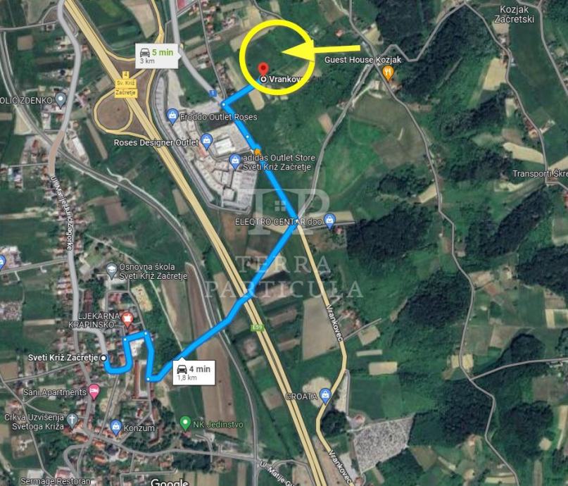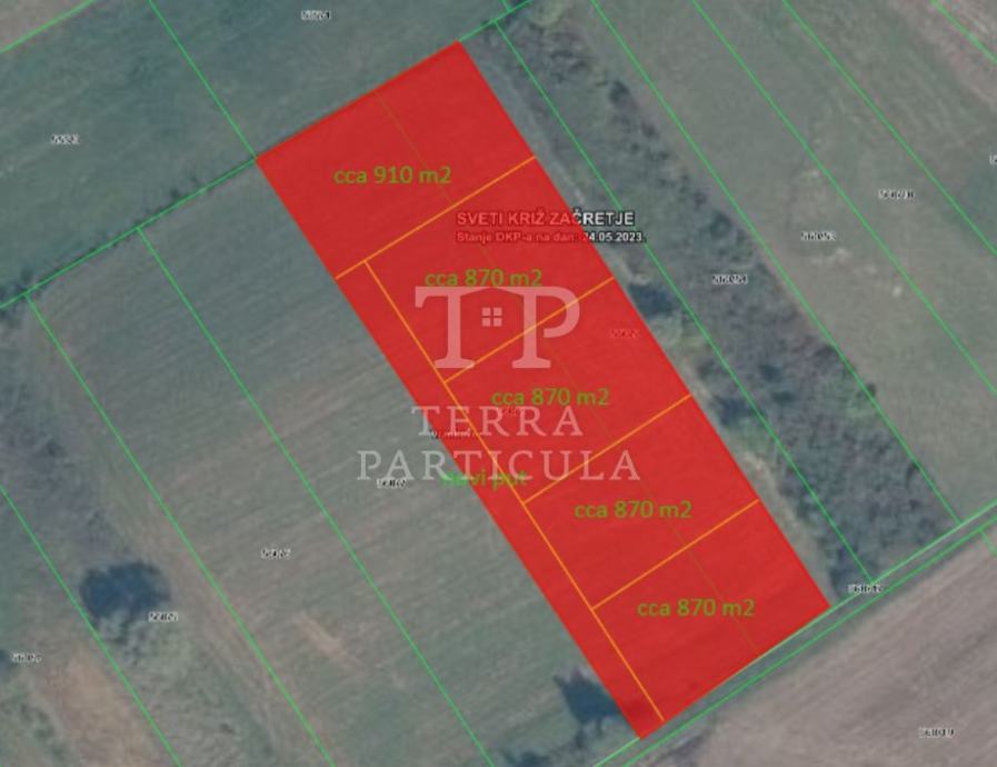 Na prodaju je građevinsko zemljište površine 4.801 m². Nalazi se uz adresu Vrankovec 5C, Sveti Križ Začretje, u neposrednoj blizini Roses Designer Outleta. Moguća je parcelacija zemljišta (skica u prilogu). Cijena: 20 €/m².