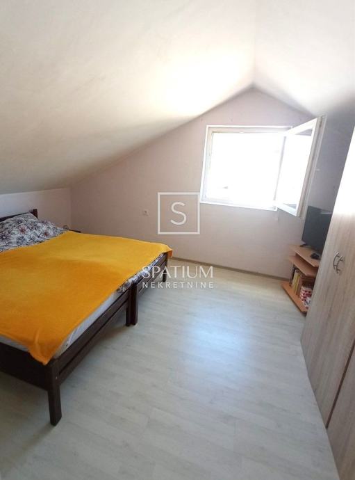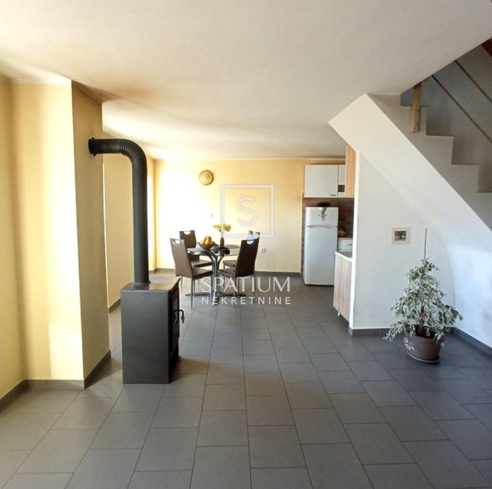 SVETI KUZAM, u ponudi je samostojeća, obiteljska kuća sa dvije odvojene stambene jedinice. Kompletno je i kvalitetno adaptirana 2017. godine te se prodaje potpuno namještena. U prizemlju se nalazi jednosoban stan, dok kat i visoko potkrovlje zauzima trosoban stan sa dnevnim boravkom.