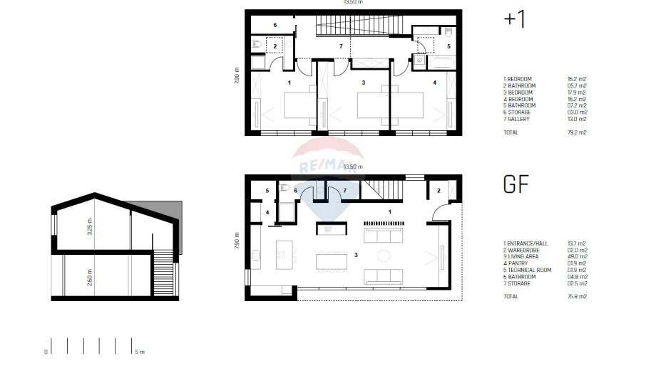 U prizemlju buduće vile nalazi se prostrani dnevni boravak, blagovaonica s kuhinjom, jedna spavaća soba s kupaonom, spremište i vešeraj.